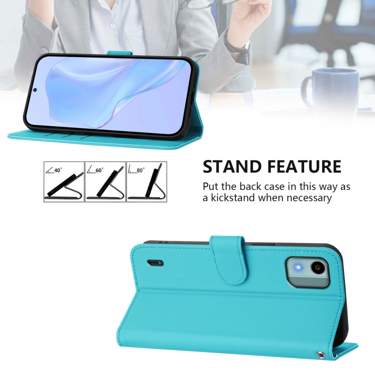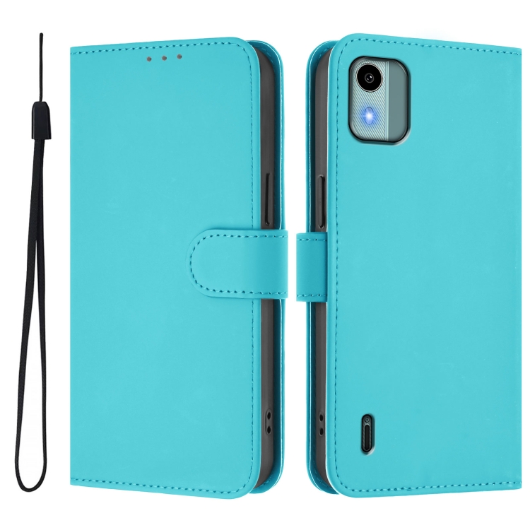 Funda de Piel con Cordón para Teléfono Nokia C12 con Acabado Liso (Azul Lago)