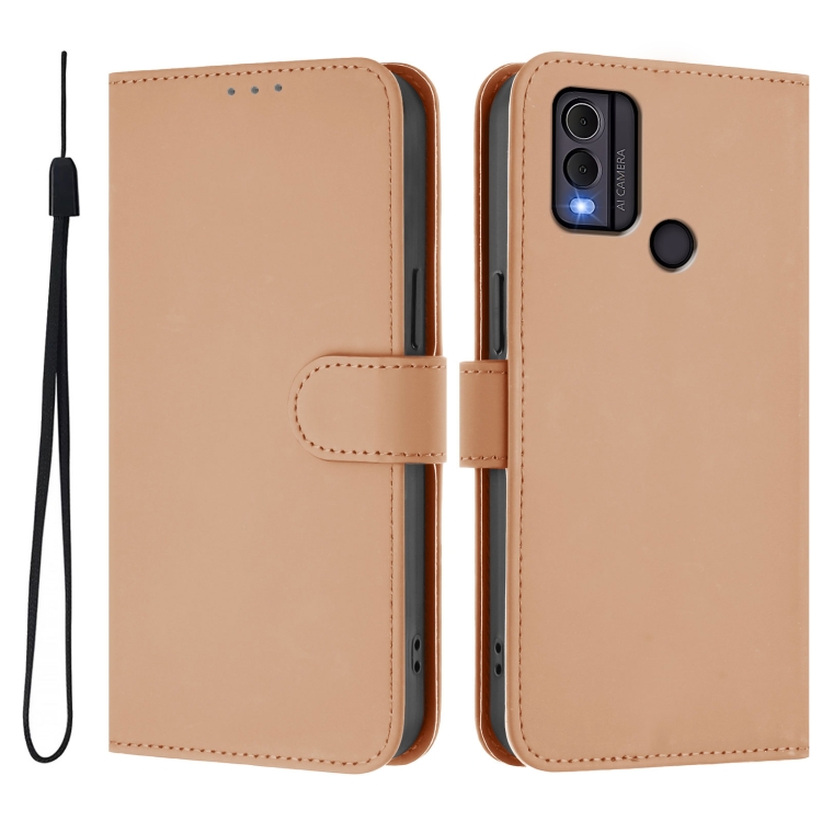 Funda de Piel con Cordón para Teléfono Nokia C22 (Desnudo) Color Liso y Tacto Suave