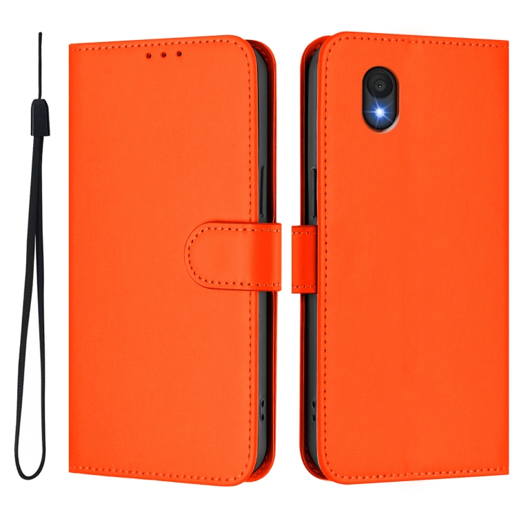 Funda de Piel con Cordón para Teléfono TCL 201 con Tacto de Piel (Naranja)