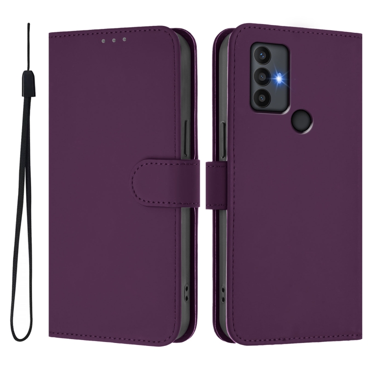 Funda de Piel con Cordón para Teléfono TCL 30 Se con Tacto de Piel (Violeta)