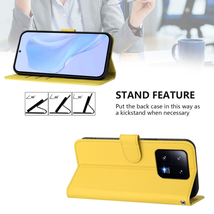 Funda de Piel con Cordón para Teléfono Xiaomi 13 Pro 5G con Tacto de Piel de Color Liso (Amarillo Limón)
