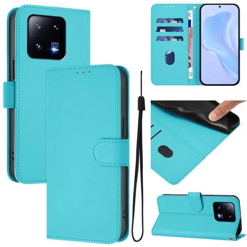 Funda de Piel con Cordón para Teléfono Xiaomi 13 Pro 5G con Tacto de Piel de Color Liso (Azul Lago)