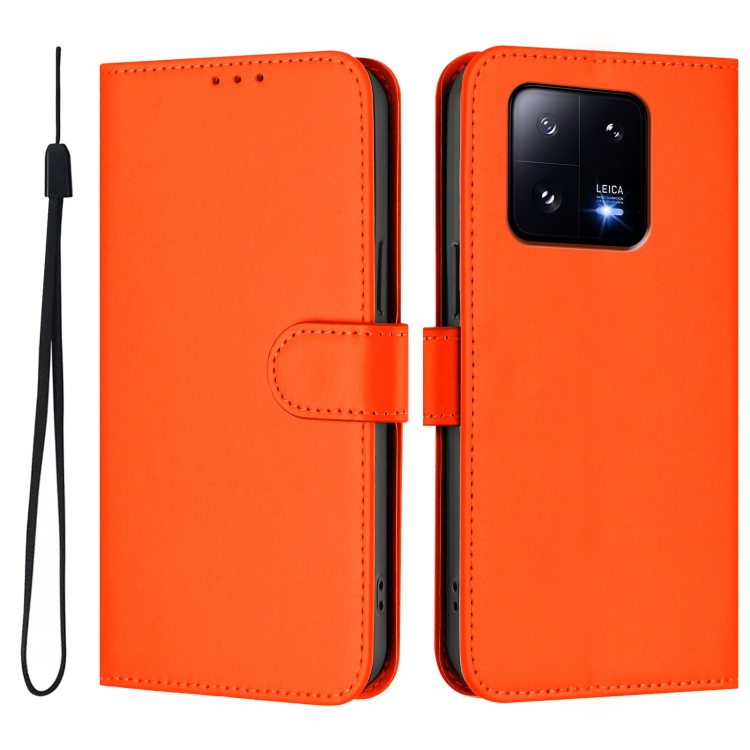 Funda de Piel con Cordón para Teléfono Xiaomi 13 Pro 5G con Tacto de Piel de Color Liso (Naranja)