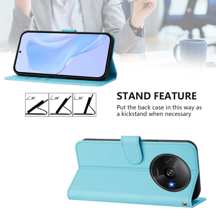 Funda de Piel con Cordón para Teléfono Xiaomi Poco C61 4G con Diseño Global de Piel Sintética de Color Liso (Azul Cielo)