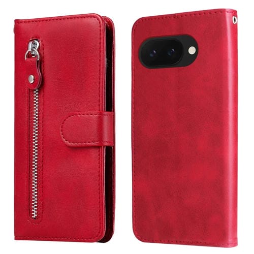 Funda de Piel con Cremallera y Textura de Becerro para Google Pixel 9A (Rojo)