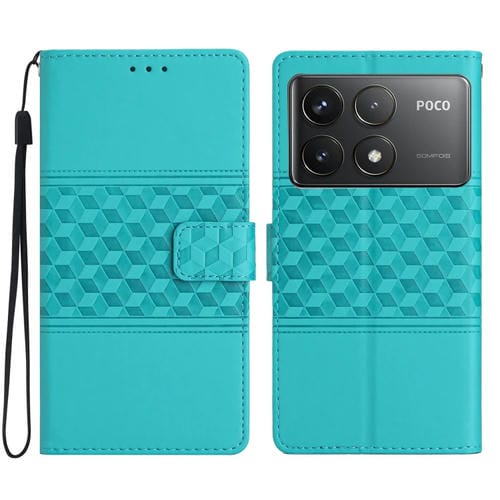 Funda de Piel con Efecto Piel En Relieve de Diamante para Xiaomi Poco F6 Pro (Azul)