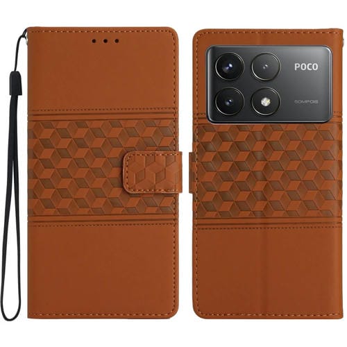 Funda de Piel con Efecto Piel En Relieve de Diamante para Xiaomi Poco F6 Pro (Marrón)