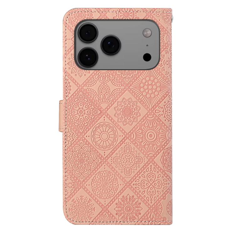 Funda de piel con estampado étnico en relieve para iPhone 17 Pro (rosa)