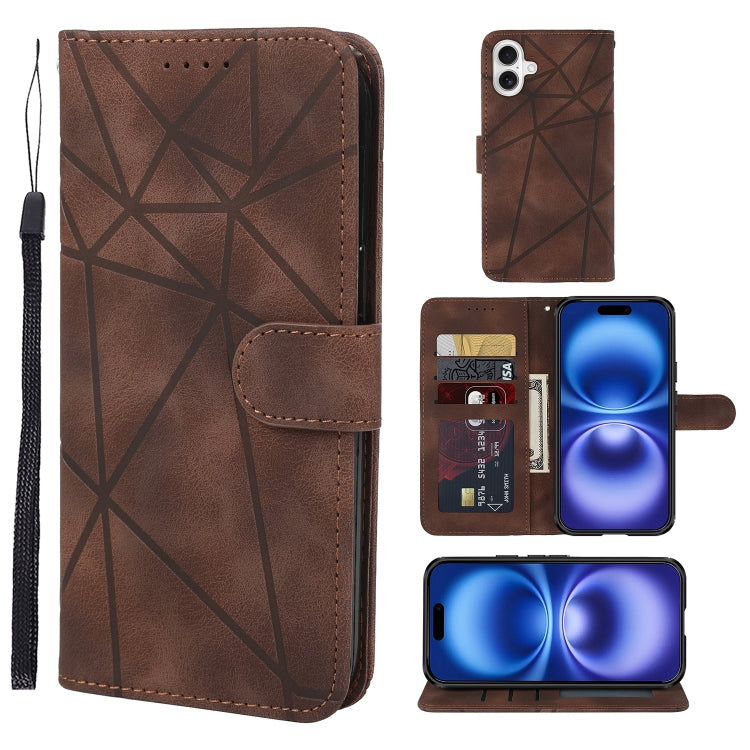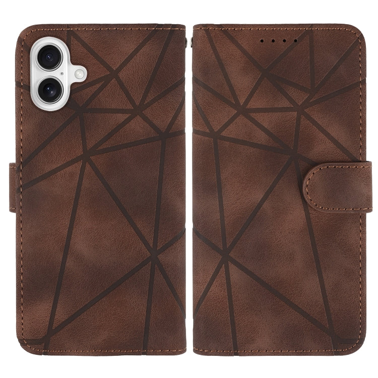 Funda de Piel iPhone 16 Líneas Geométricas Tacto Sedoso (Marrón)