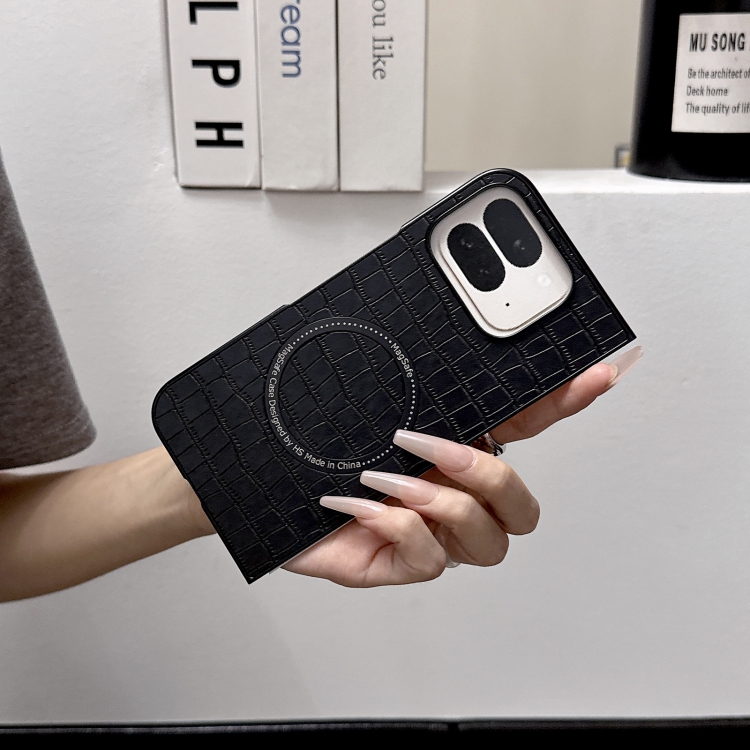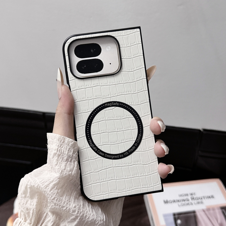 Funda de Piel con Patrón de Cocodrilo y Cierre Magnético Magsafe para Google Pixel 9 Pro Fold (Blanca)