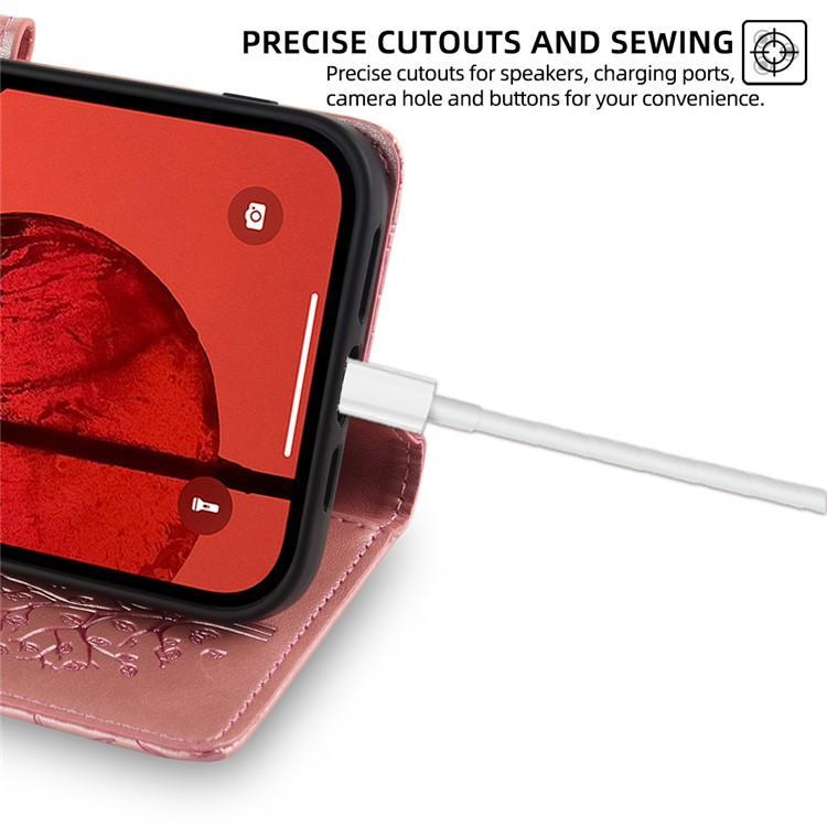 Funda de piel con relieve de árbol y ciervo para iPhone 17 (oro rosa)