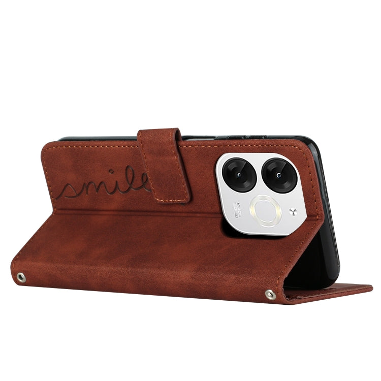 Funda de Piel con Relieve de Corazón y Cordón Largo para Teléfono Itel A80 (Marrón)