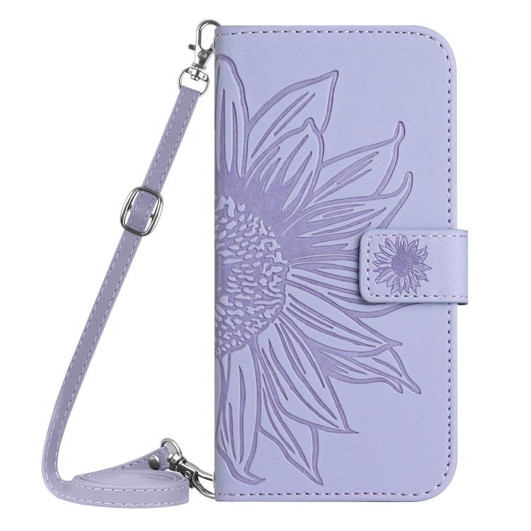Funda de Piel con Relieve de Girasol y Cordón para OnePlus 13R (Morado)
