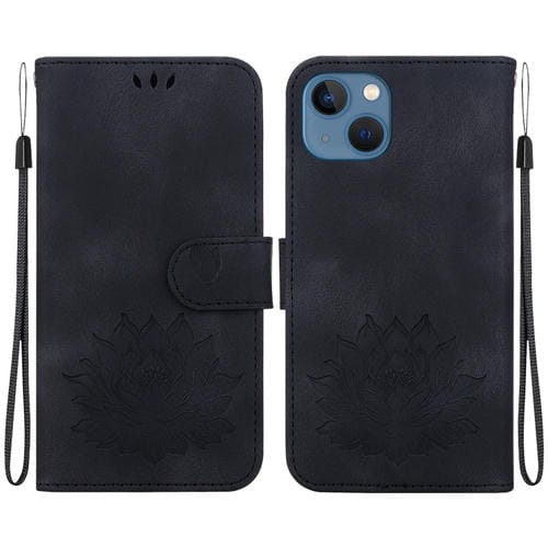 Funda de Piel con Relieve de Loto para iPhone 14 Plus (Negra)
