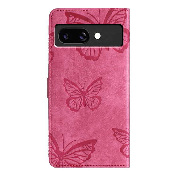 Funda de Piel con Relieve de Mariposa para Google Pixel 9A (Rosa Rojo)