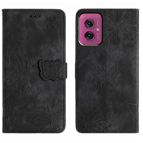 Funda de Piel con Relieve Mariposa para Motorola Moto G55 (Negra)
