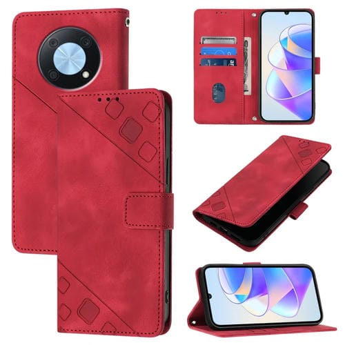 Funda de Piel con Relieve para Huawei Enjoy 50 Pro y Nova Y90 (Roja)