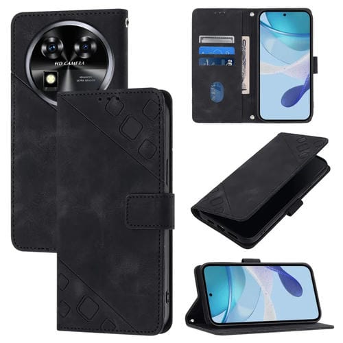 Funda de Piel con Relieve para Teléfono Oukitel C37 (Negra)