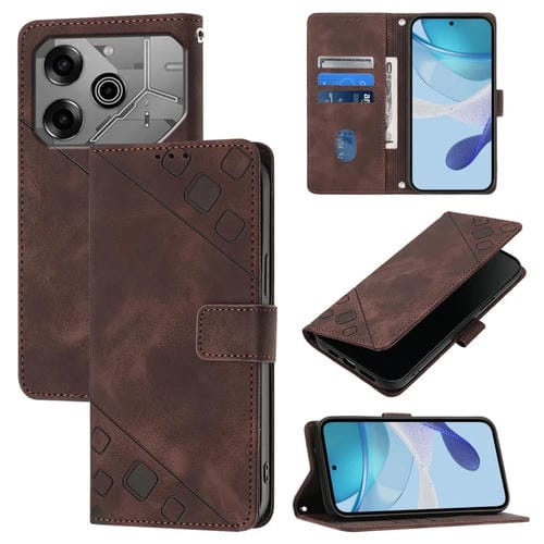 Funda de Piel con Relieve para Teléfono Tecno Pova 6 Neo Skin Feel (Marrón)