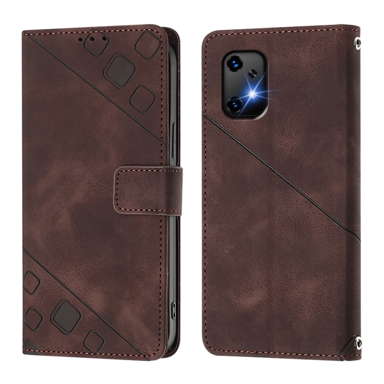 Funda de Piel con Relieve para Teléfono Umidigi Bison X20 (Marrón)