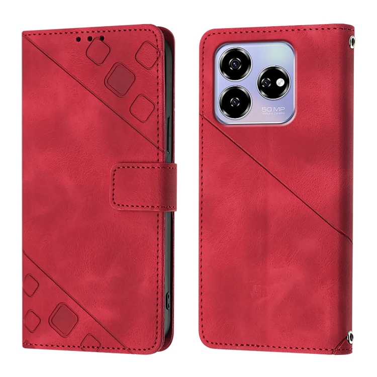 Funda de Piel con Relieve para Teléfono ZTE Blade V60 y Axon 60 4G (Roja)