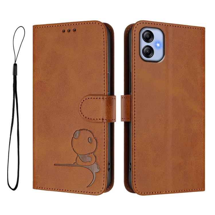 Funda de piel con relieve RFID y cordón para Samsung Galaxy A04e/F04/M04 (marrón)