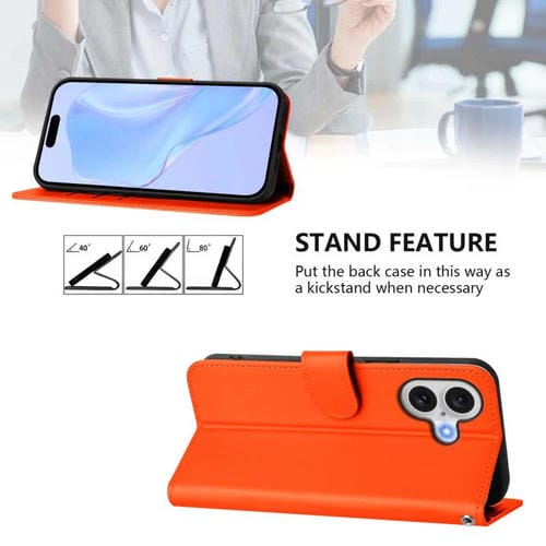 Funda de piel con tacto suave y color liso para iPhone 17 con cordón (naranja)