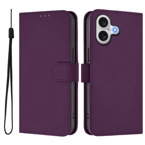 Funda de piel con tacto suave y color liso para iPhone 17 con cordón (violeta)