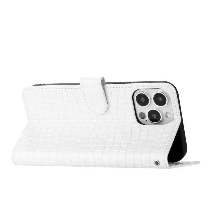 Funda de Piel con Tapa Horizontal Textura Cocodrilo para iPhone 16 Pro (Blanca)