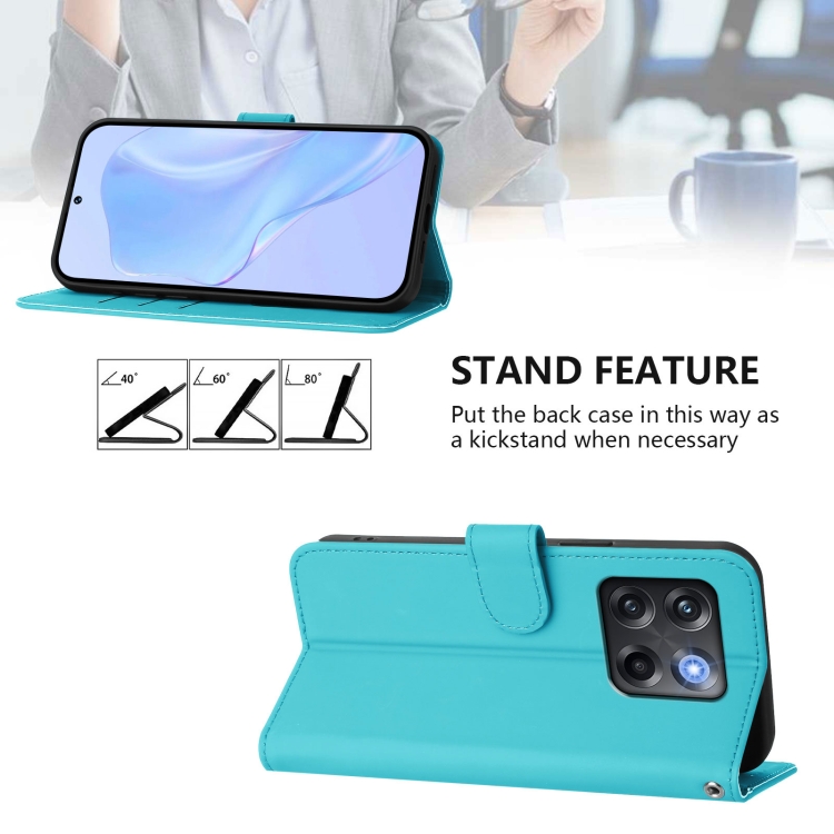 Funda de Piel con Textura para OnePlus Ace Pro 5G con Cordón (Azul Lago)