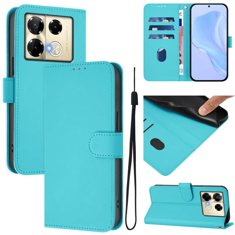Funda de Piel con Textura para Infinix Note 40 Pro 4G con Cordón (Azul Lago)