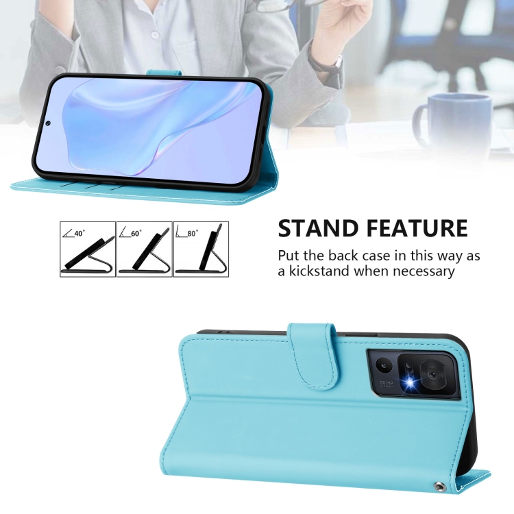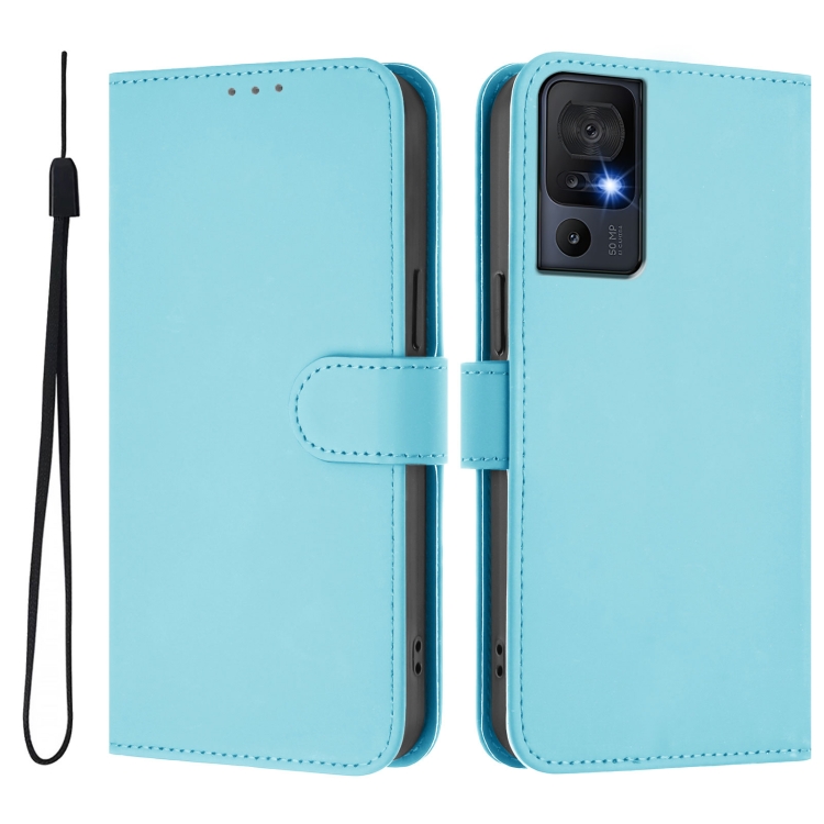 Funda de Piel para Teléfono TCL 40 Se con Textura y Cordón (Azul Cielo)