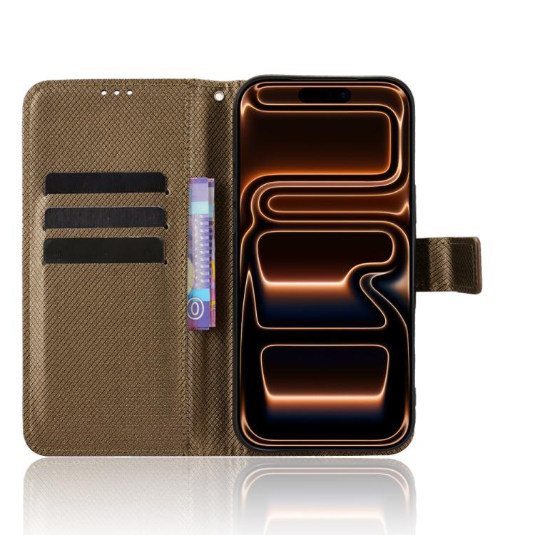 Funda de piel con textura de diamante para iPhone 17 Pro (marrón)