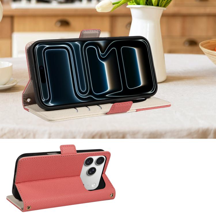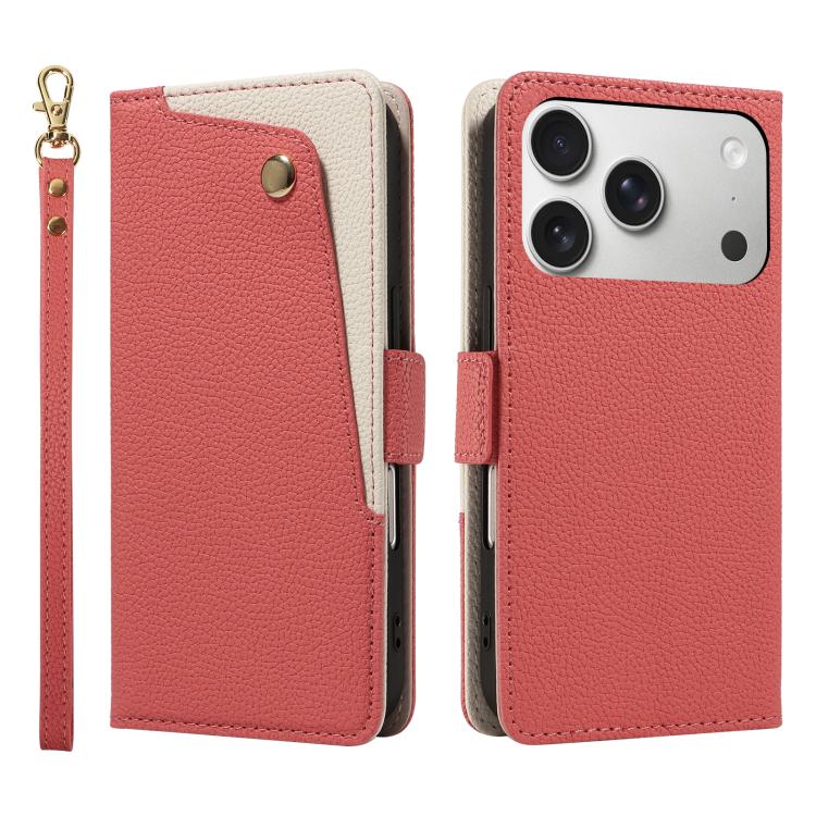 Funda de piel con textura de lichi y espejo para iPhone 17 Pro (Roja)