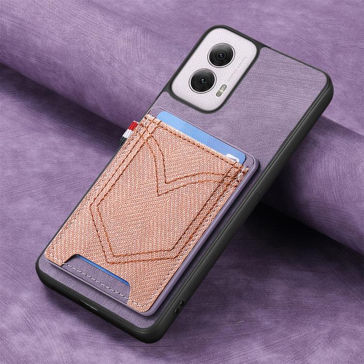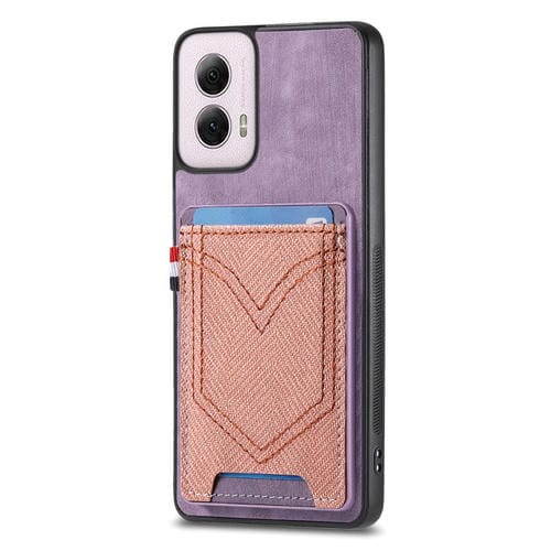 Funda de Piel con Textura Vaquera para Motorola Moto G Power 5G (2024) con Ranura para Tarjetas (Morado)