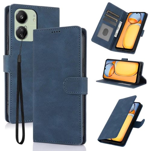 Funda de Piel de Becerro con Textura de Piel de Becerro y Tacto Fantástico para Redmi 13C 4G (Azul)