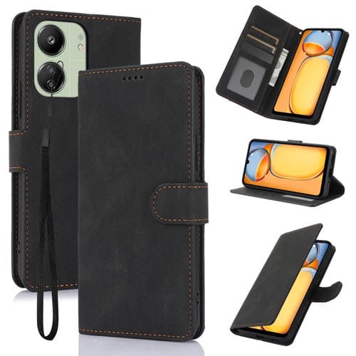 Funda de Piel de Becerro con Textura de Piel de Becerro y Tacto Fantástico para Redmi 13C 4G (Negra)