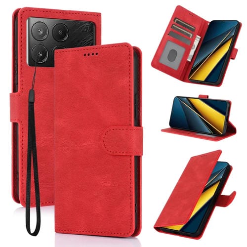 Funda de Piel de Becerro con Textura de Piel de Fantasía para Xiaomi Poco X6 Pro 5G (Rojo)