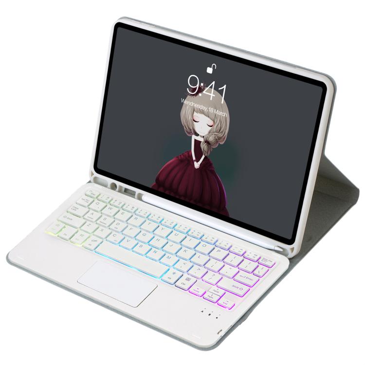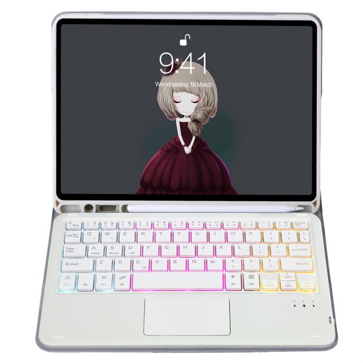 Funda para Tableta de Piel de Cordero con Ranura para Bolígrafo, Panel Táctil, Retroiluminación y Teclado Bluetooth (Gris) para iPad Air 2022, 2020 y Pro 11 2021, 2020, 2018