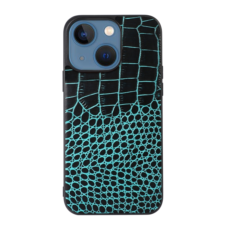 Funda para iPhone 13 Mini Piel de Vaca con Capa Superior de Cocodrilo (Azul Cian)