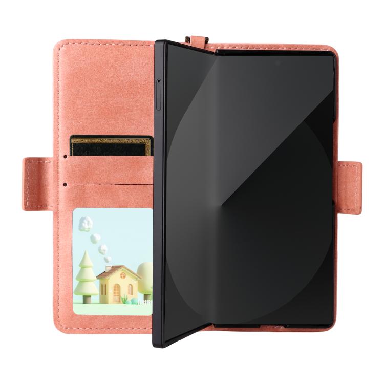 Funda de piel de vacuno cruzada con ranuras para múltiples tarjetas para Samsung Galaxy Z Fold2 5G (rosa)