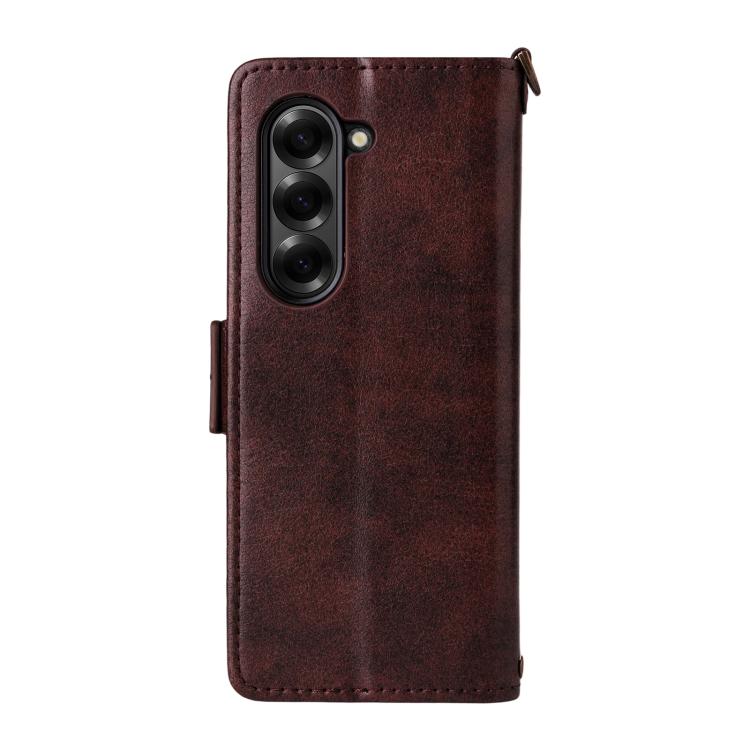 Funda de piel de vacuno cruzada con ranuras para múltiples tarjetas para Samsung Galaxy Z Fold3 5G (marrón)