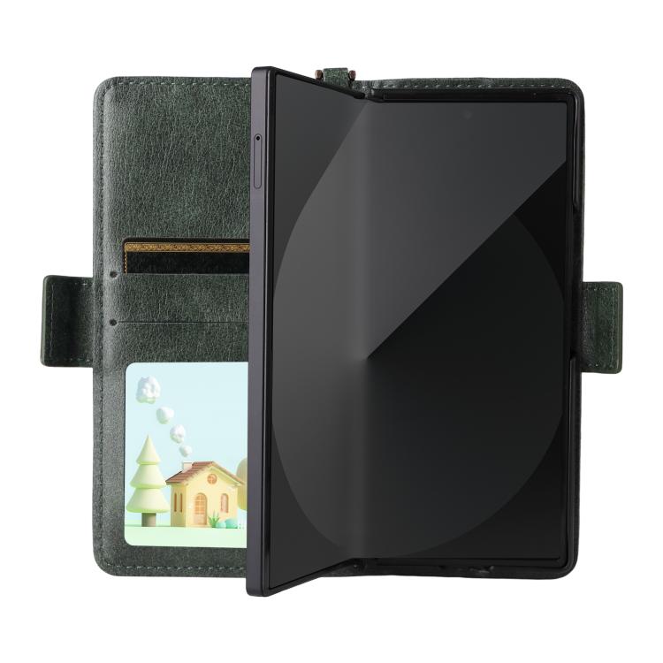Funda de piel de vacuno cruzada con ranuras para múltiples tarjetas para Samsung Galaxy Z Fold3 5G (verde)