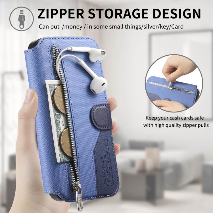 2. Cartera con cremallera: La funda de piel cuenta con una cartera con cremallera y ranuras para tarjetas, ideales para guardar tarjetas y algo de efectivo.