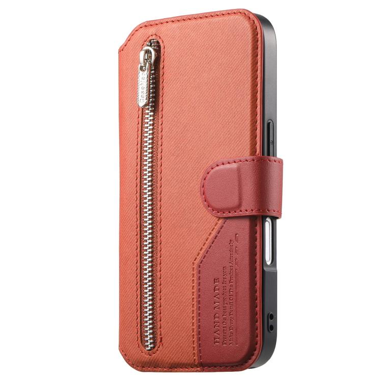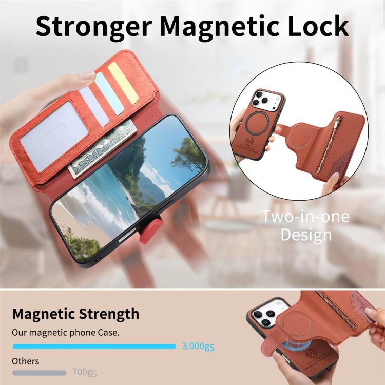Funda de piel para iPhone 17 Pro, de tela de sarga, con MagSafe, RFID, antirrobo y cremallera (naranja).