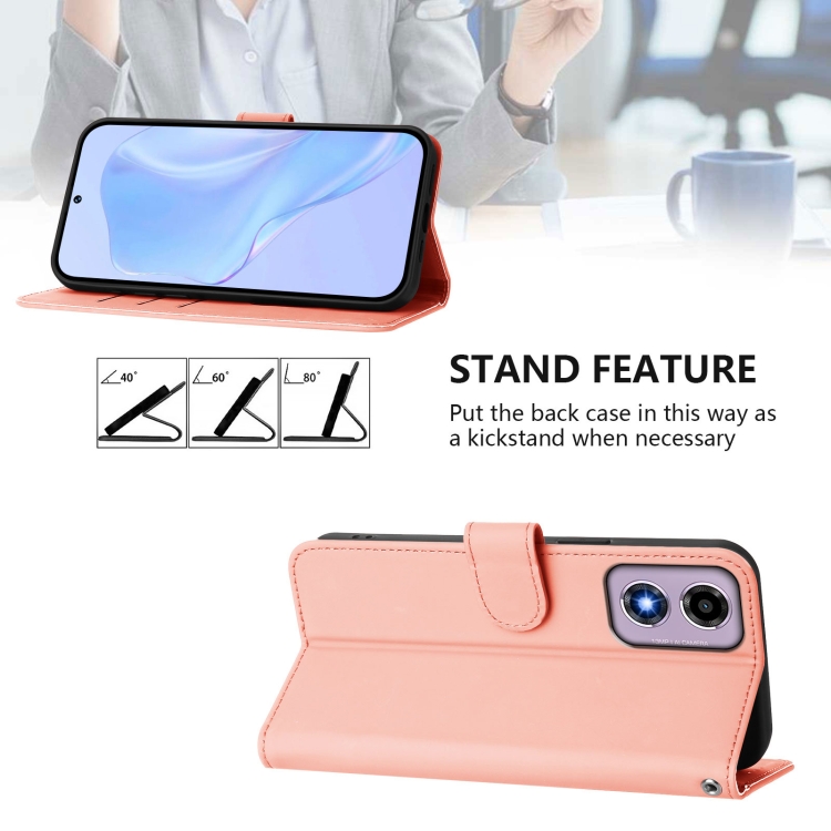 Funda de Piel Sintética con Cordón para Motorola Moto E14/G04 4G (Rosa)