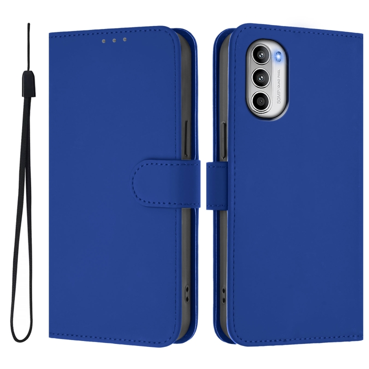 Funda de Piel Sintética con Cordón para Motorola Moto G52 4G y G82 5G (Azul Oscuro)