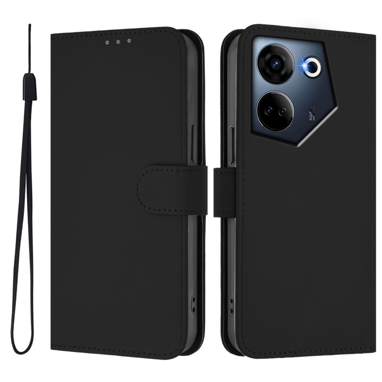 Funda de Piel Sintética con Cordón para Tecno Camon 20 Pro 4G (Negro)