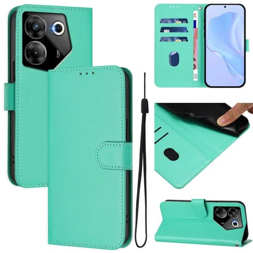 Funda de Piel Sintética con Cordón para Tecno Camon 20 Pro 5G (Verde)