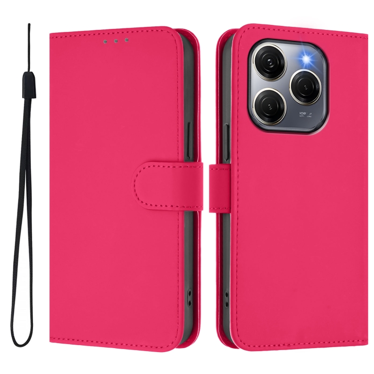 Funda de Piel para Tecno Spark 20 Pro 5G con Textura Lisa y Cordón (Rosa)